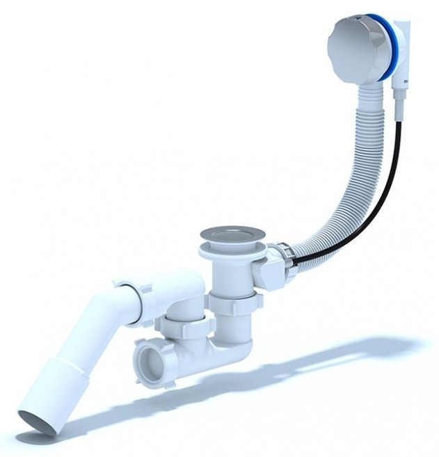 Сифон сливной регулируемый АНИ пласт EM321 для ванны, полуавтомат с переливом: