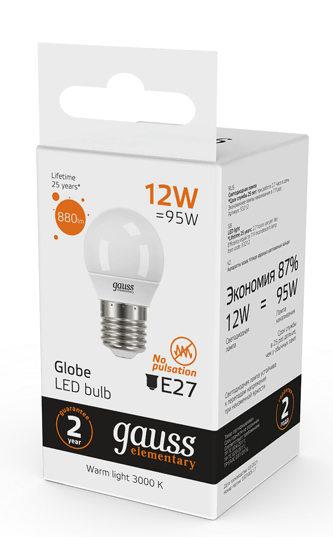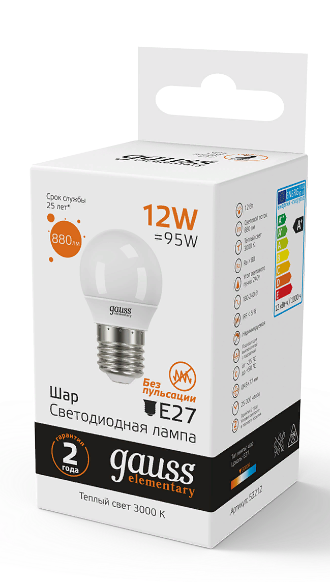 Светодиодная лампа Gauss Elementary — залог хорошего освещения в вашем доме и офисе! Главными преимуществами светодиодных лампочек являются малое потребление энергии и большой срок службы. Лампа светодиодная — это прекрасная альтернатива галогенным лампам и лампам накаливания.