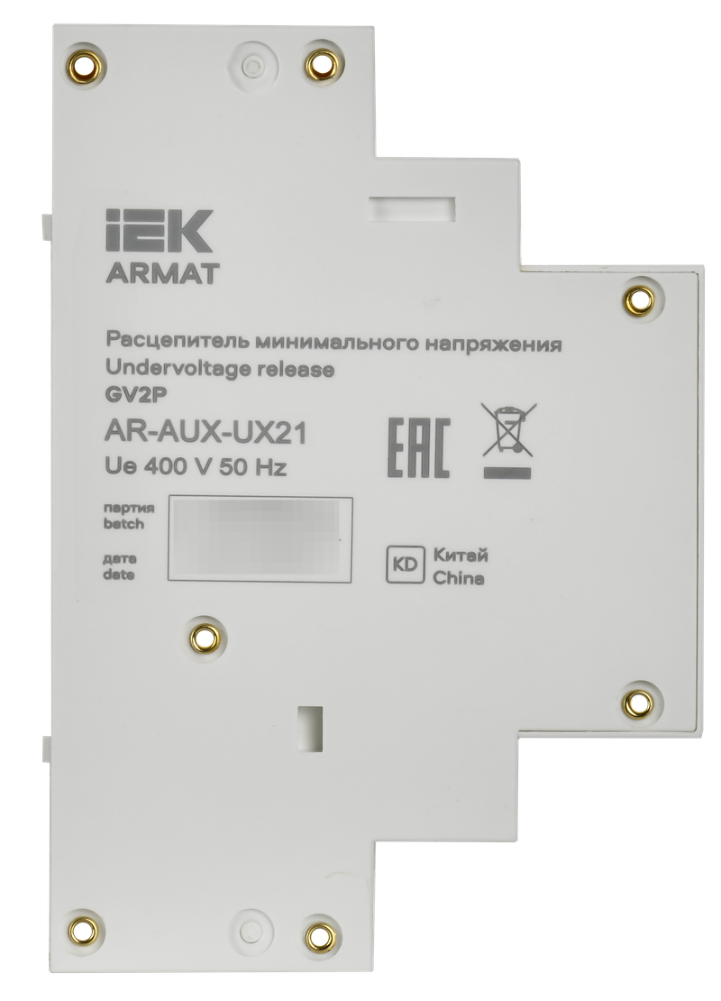 Расцепитель минимального напряжения IEK Armat GV2P реализуется в индивидуальной упаковке.