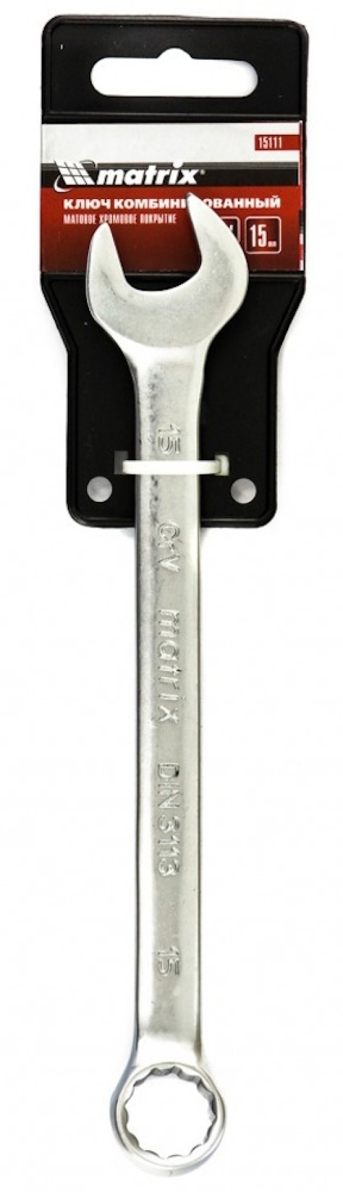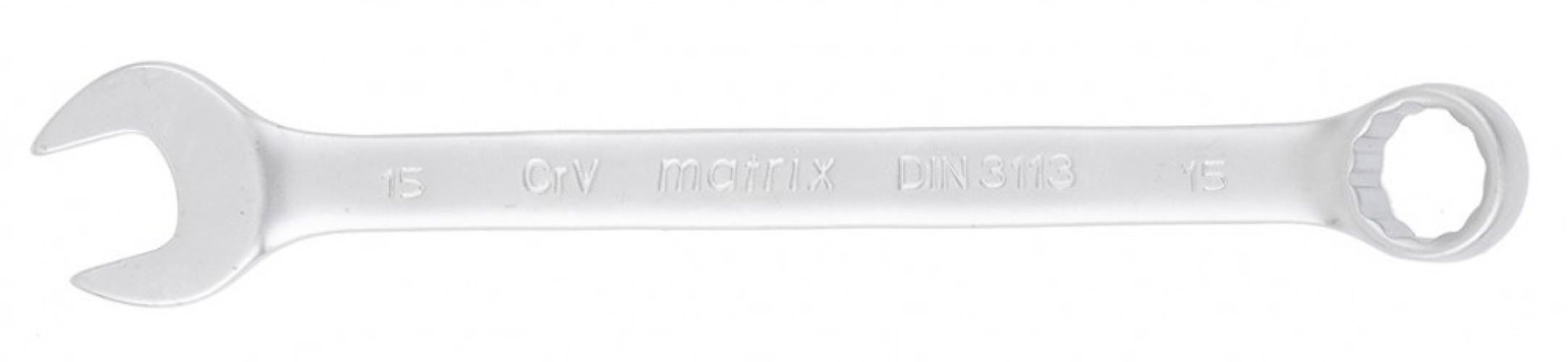 Ключ комбинированный Matrix 15111 из стали CrV, 15 мм, с покрытием «матовый хром», пригодится при проведении ремонтных работ дома или в гараже. С его помощью можно осуществлять быстрый монтаж и демонтаж крепежных элементов. Кольцевой зев обеспечивает удобство работы благодаря углу наклона 15 градусов относительно плоскости инструмента.