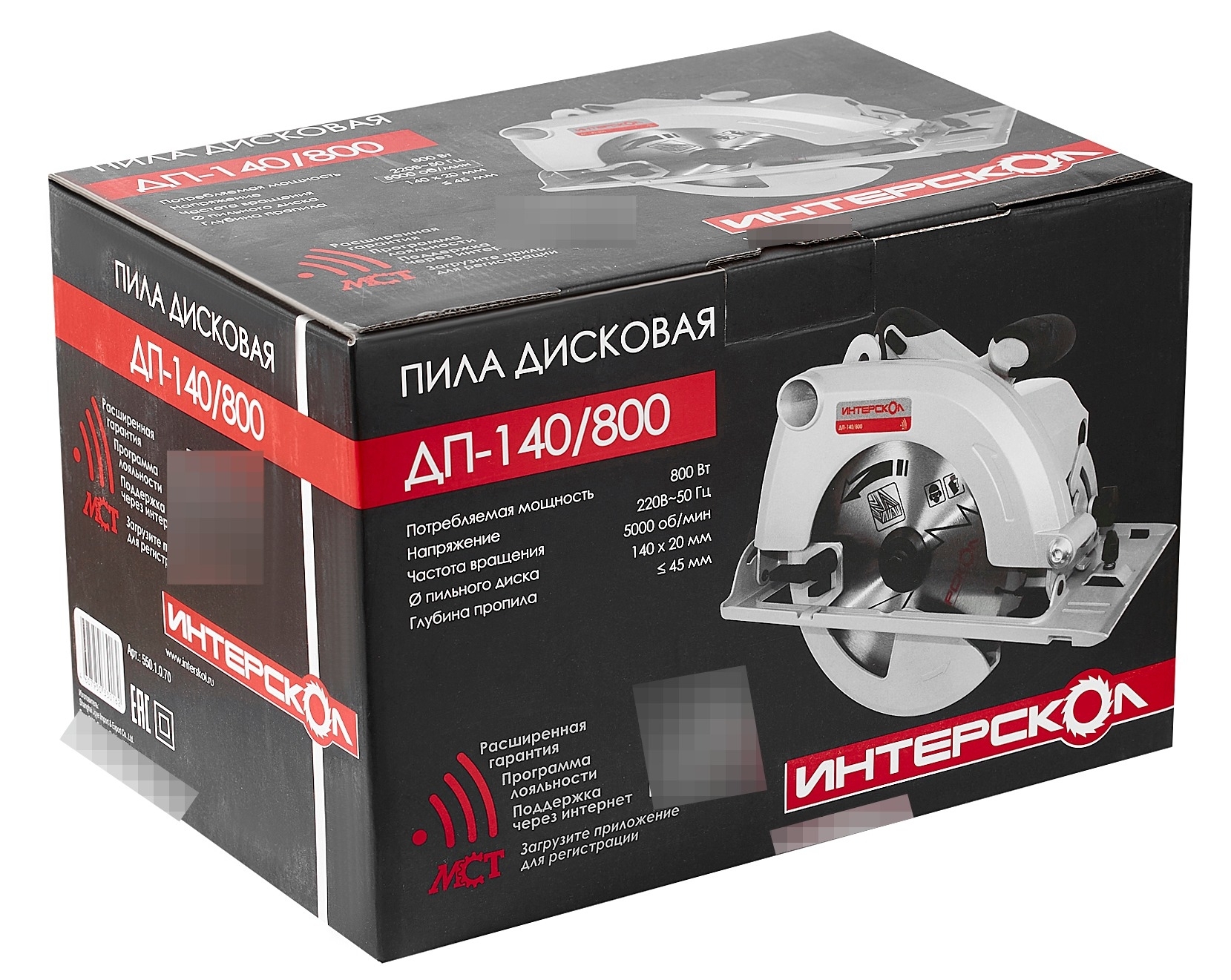 - Дисковая пила Интерскол ДП-140/800 полупрофессиональная, с подпружиненным кожухом, серая, посадочный диаметр 20мм, диск 140мм, глубина 45мм, 237×292×193мм, 800Вт - 1шт.