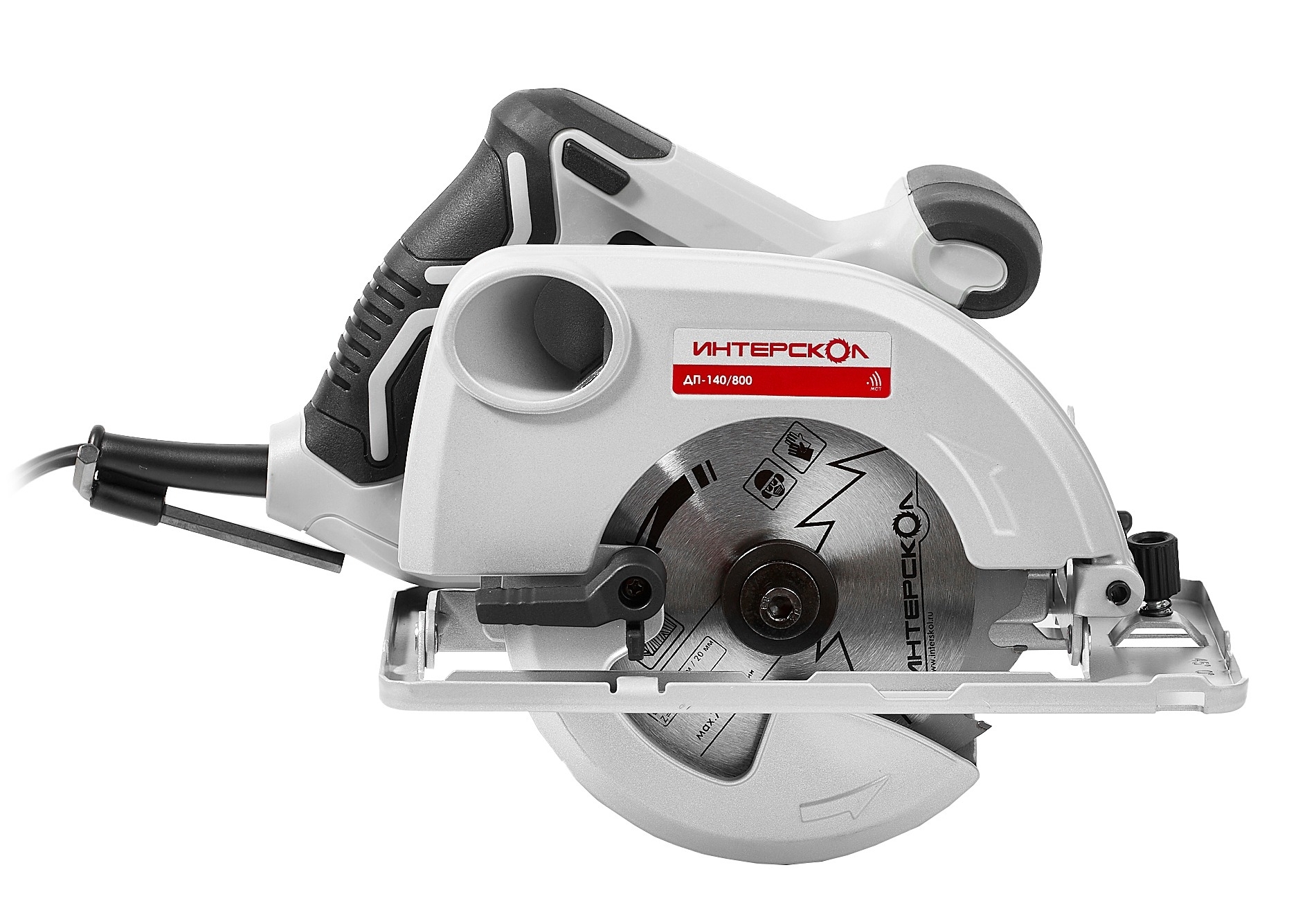 Дисковая пила Интерскол ДП-140/800 полупрофессиональная, с подпружиненным кожухом, серая, посадочный диаметр 20мм, диск 140мм, глубина 45мм, 237×292×193мм, 800Вт / инструменты
