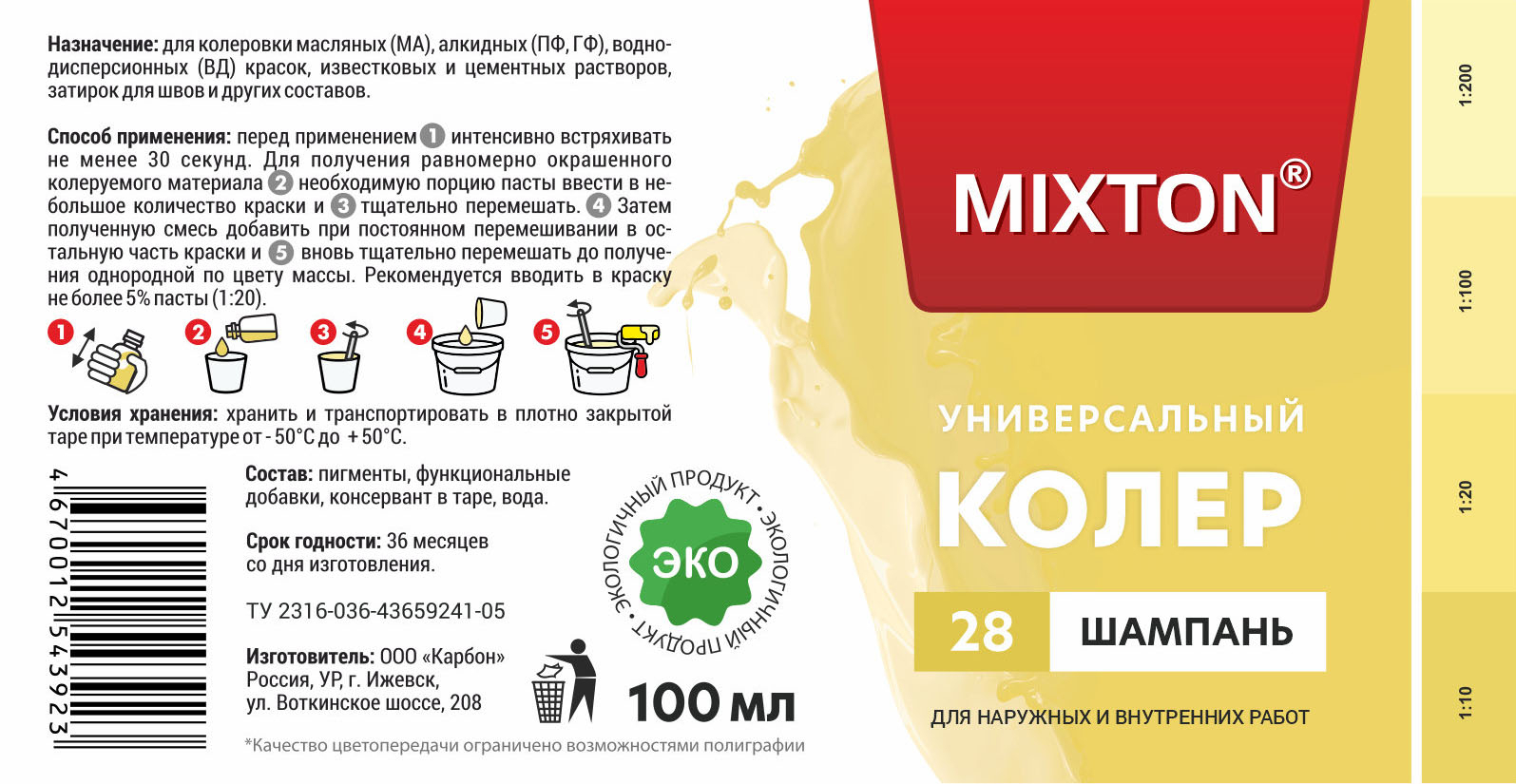 Колер для краски MIXTON / Микстон паста универсальная, цвет шампань, 0.1л / строительство и ремонт