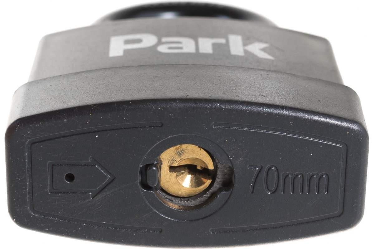 Замок навесной Park / Парк P-0270 всепогодный с автоматическим запиранием, металлический, 3 ключа, дужка диаметром 7мм / средства защиты