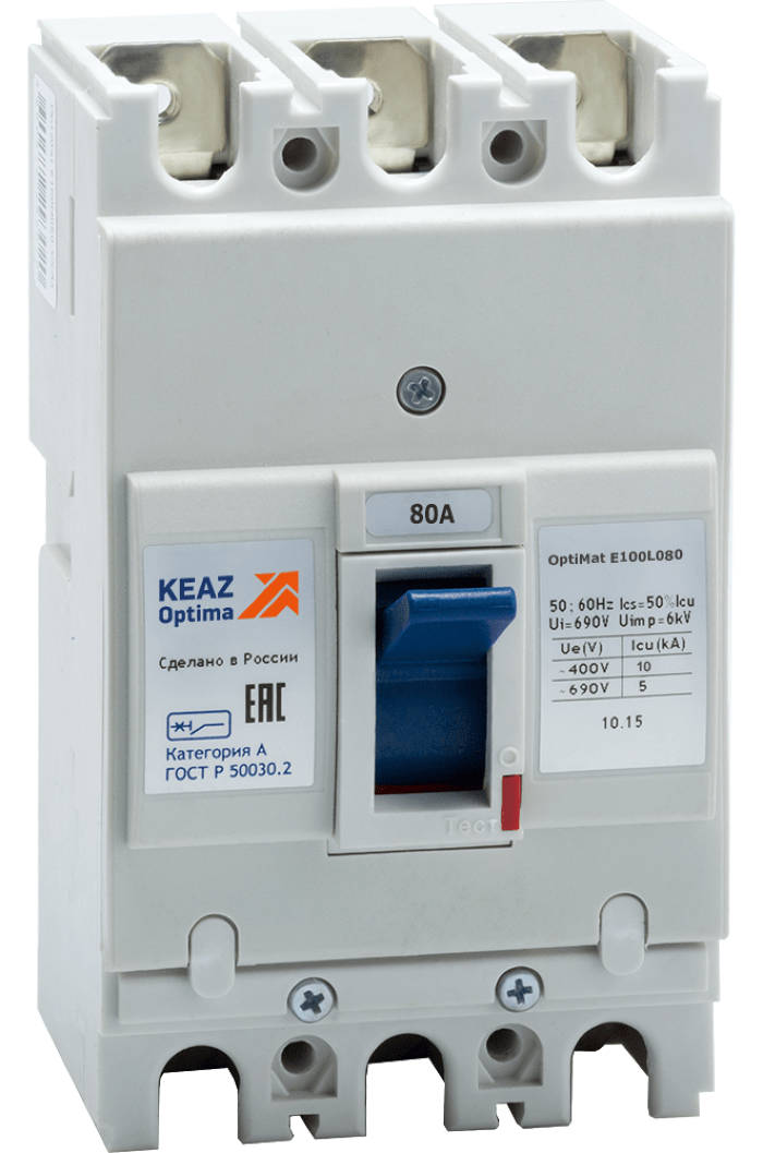 Согласно классификатору Etim автоматический выключатель силовой КЭАЗ OptiMat E100L080 обладает широким набором характеристик: