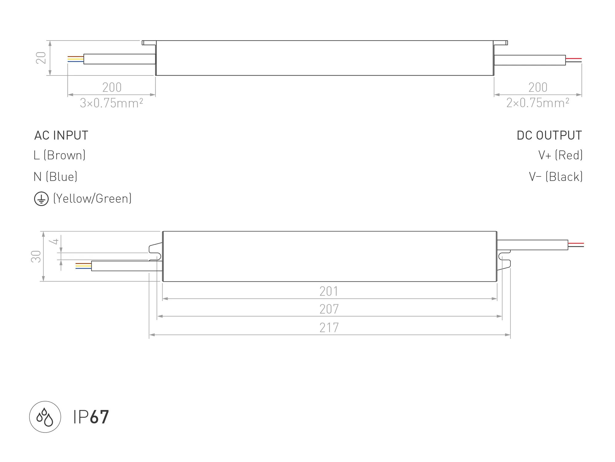 — Класс пылевлагозащиты IP67.