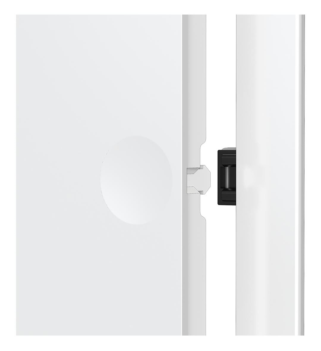 Благодаря встроенному механизму люк открывается и закрывается легким надавливанием на углубление в дверце. Замок выдерживает до 30000 нажатий, эксплуатируется при температуре от — 10 до + 50С. Нажимной замок фиксирует дверцу, не позволяя ей самопроизвольно открываться, за счет чего люк устанавливается не только в стену, но и в потолок. Монтаж производится с учетом левостороннего или правостороннего открывания. Люк крепится с помощью клея или саморезов.