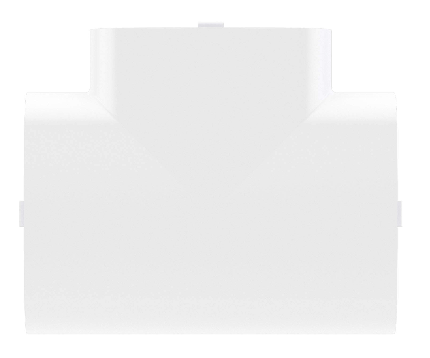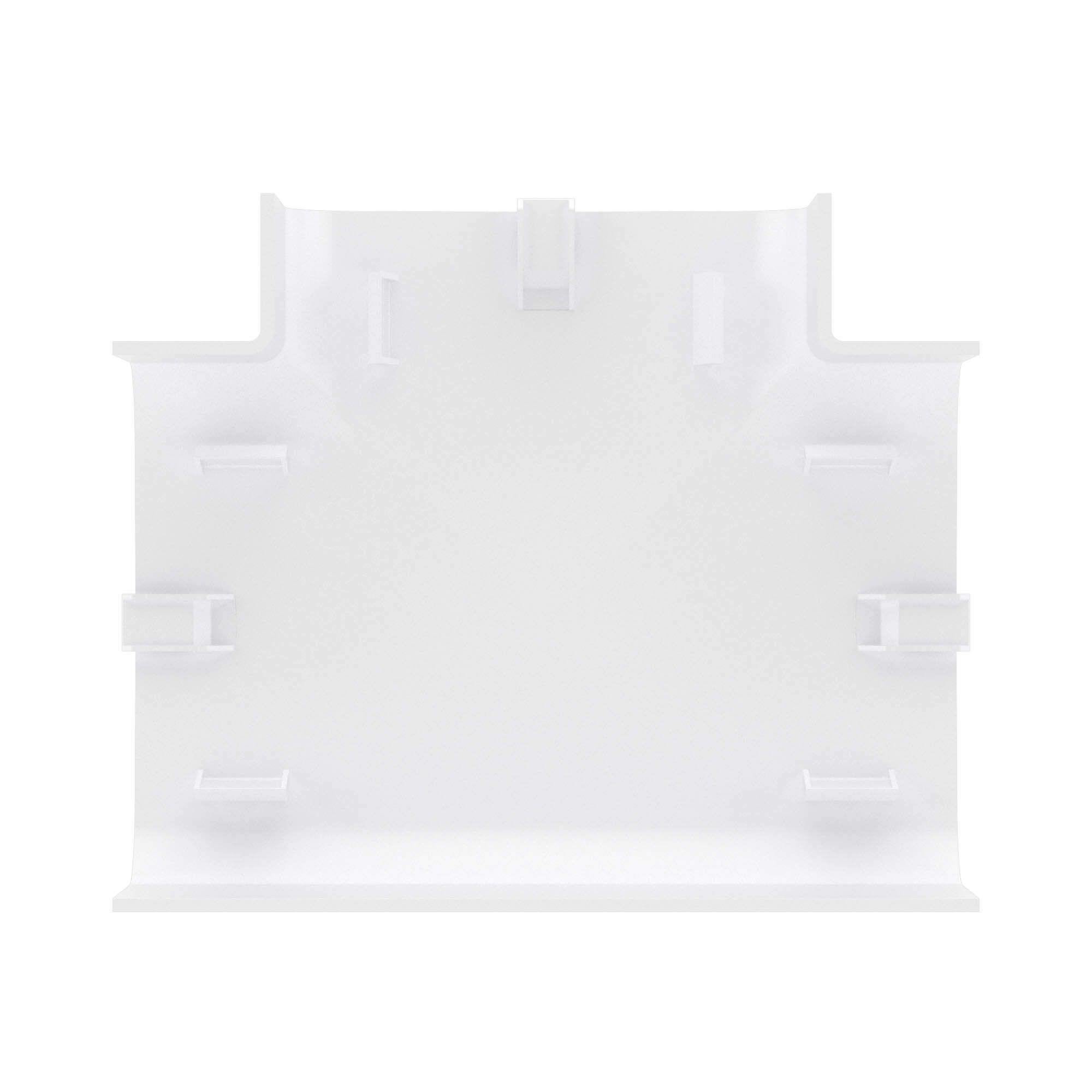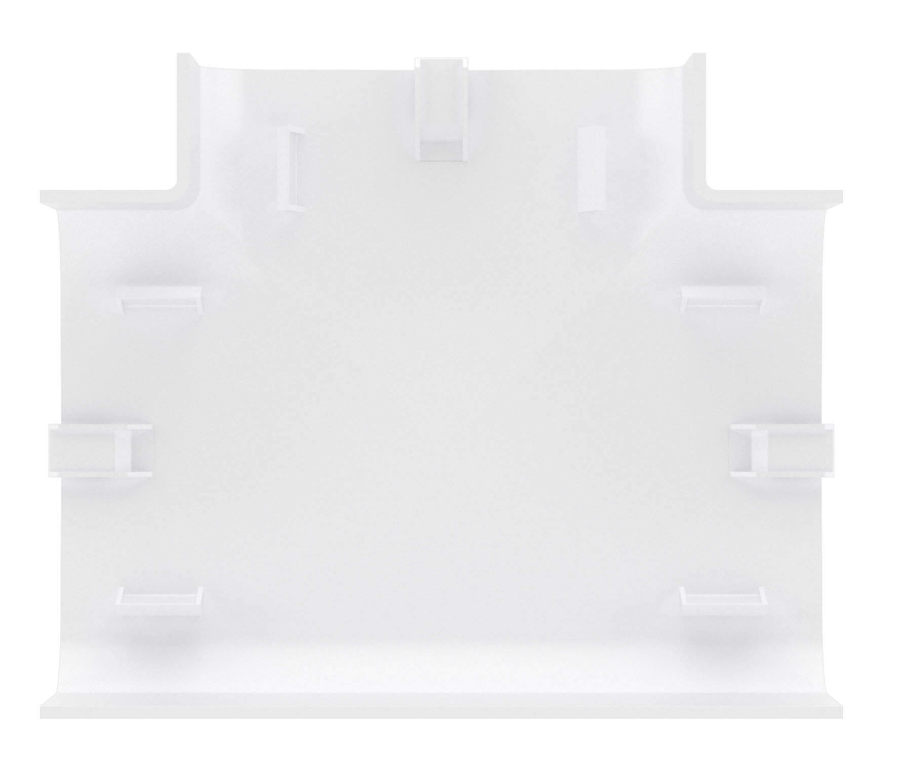 Тройник используется для маскировки мест Т-образных стыков. Аксессуар совместим с кабель-каналами 90×50 мм. Материал: накладка — АБС-пластик; база и разделители — ПП. Цвет — белый.