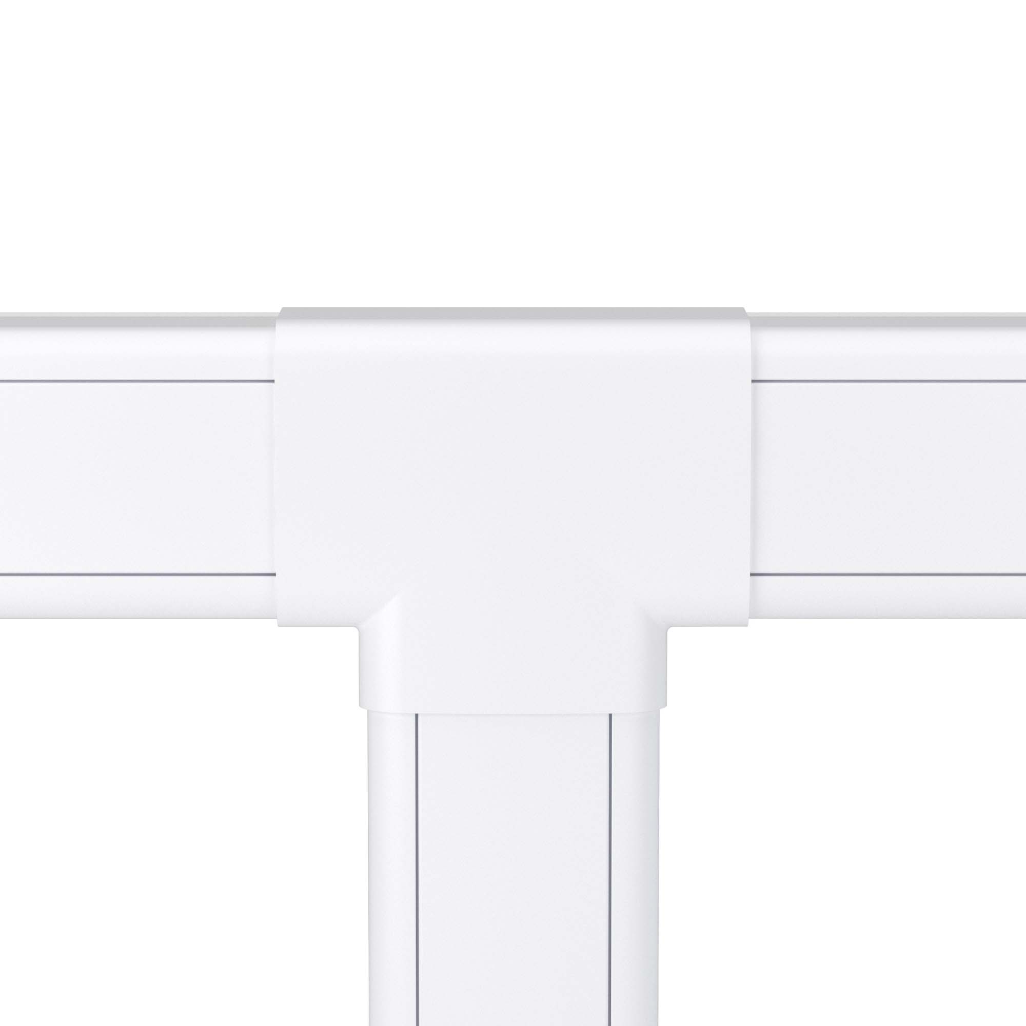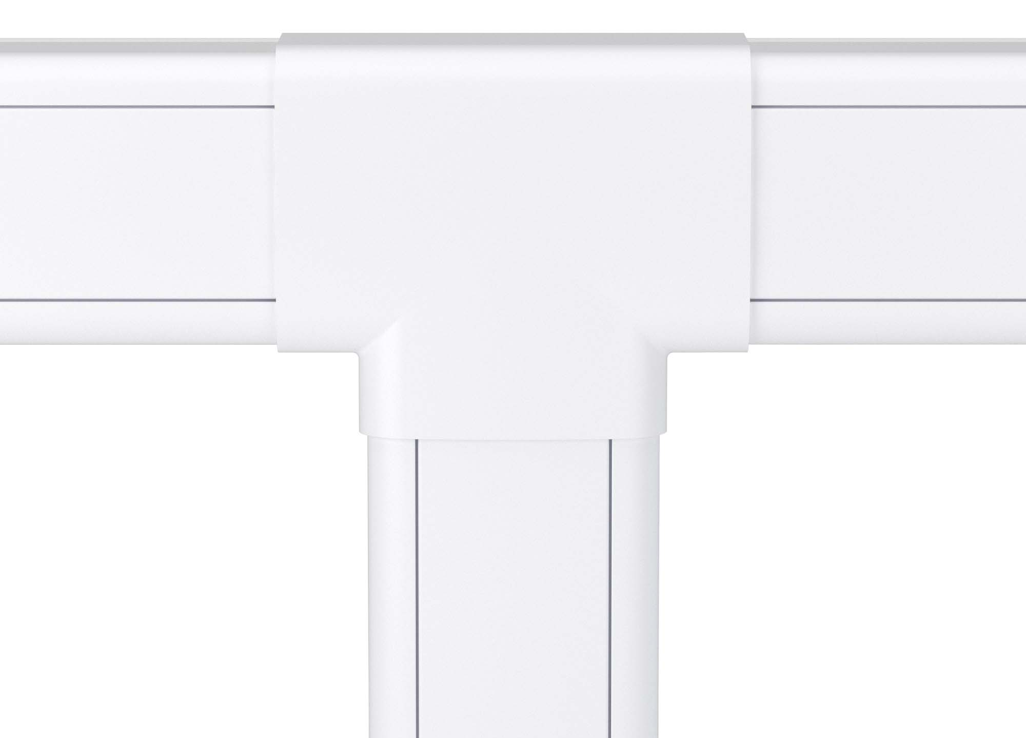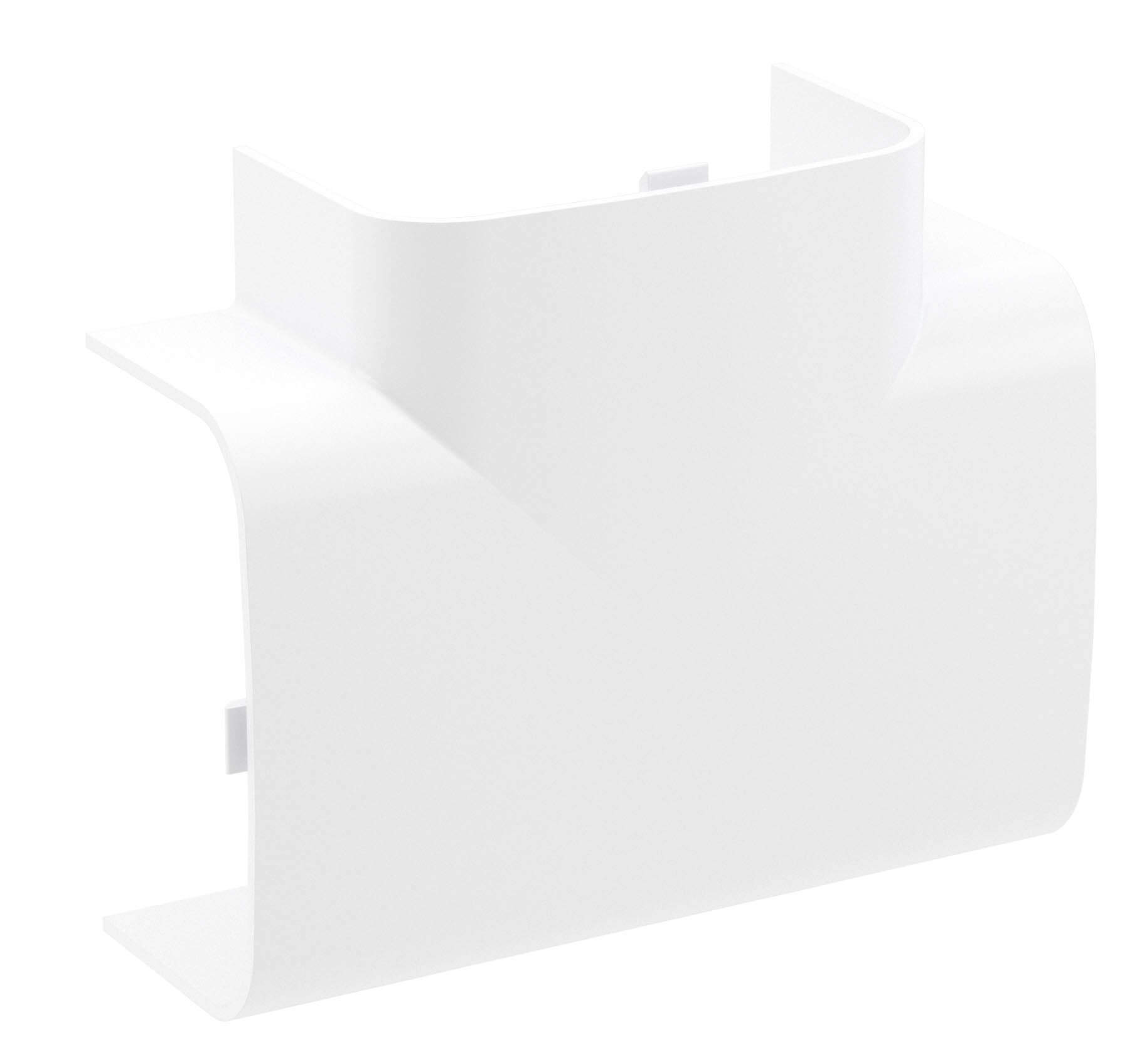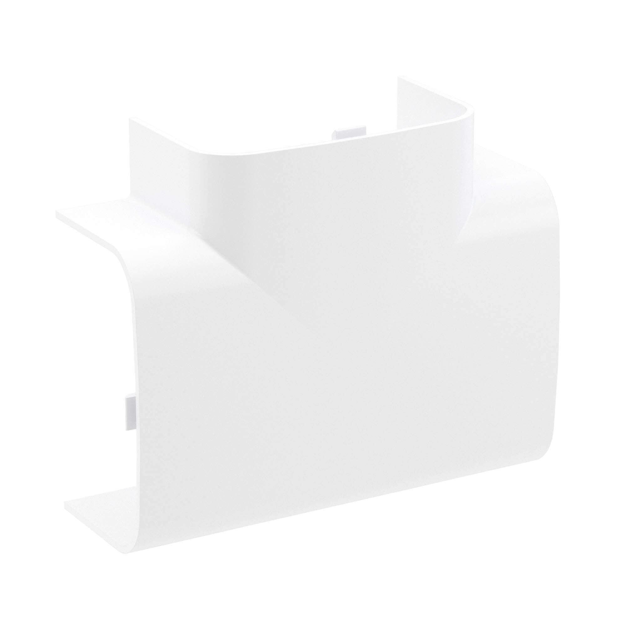 Тройник используется для маскировки мест Т-образных стыков. Аксессуар совместим с кабель-каналами 90×50 мм. Материал: накладка — АБС-пластик; база и разделители — ПП. Цвет — белый.