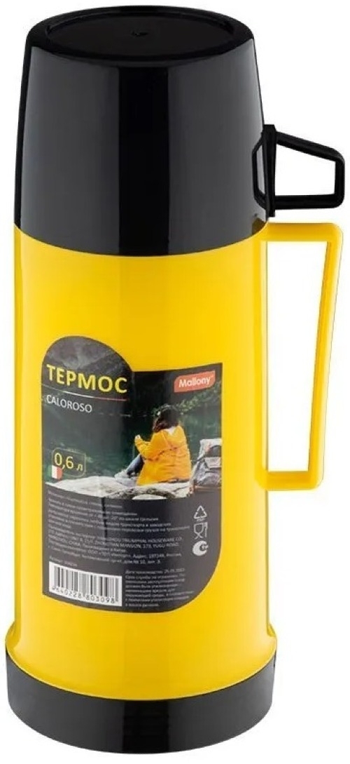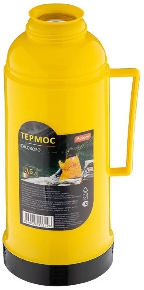 Термос Mallony / Маллони CALOROSO для напитков, из стекла и пластика, желтый, 0.6л / термопосуда