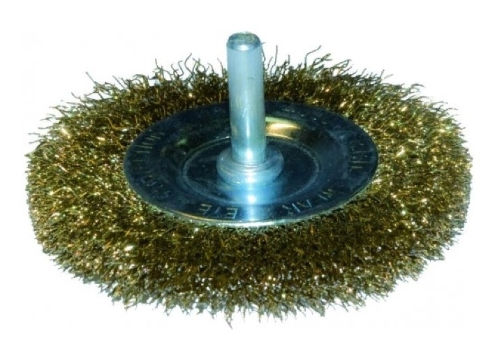 Крученая стальная омедненная проволока. Стальное оцинкованное основание. Сбалансированная конструкция щетки. Диаметр шпильки 6 мм. Диаметр проволоки 0,3 мм. Предназначена для очистки деревянных, металлических и каменных поверхностей от старой краски, ржавчины и других видов загрязнений при подготовке материалов к покраске, сварке, шпатлевке. Используется в качестве насадки на дрель.