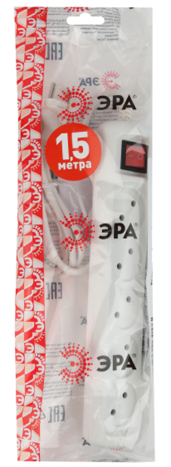 Корпус сетевого удлинителя ЭРА выполнен из ударопрочного и негорючего пластика (полипропилен).
