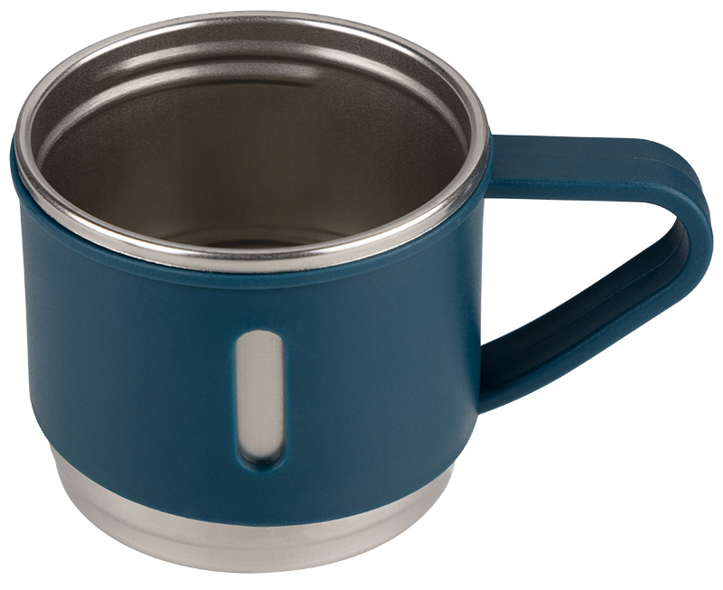 Цвет — синий. Объем — 0.5 л. Емкость отличается прочностью, возникновению коррозии. Имеет компактный размер, небольшой вес и удобный дизайн для путешествий, походов или работы.