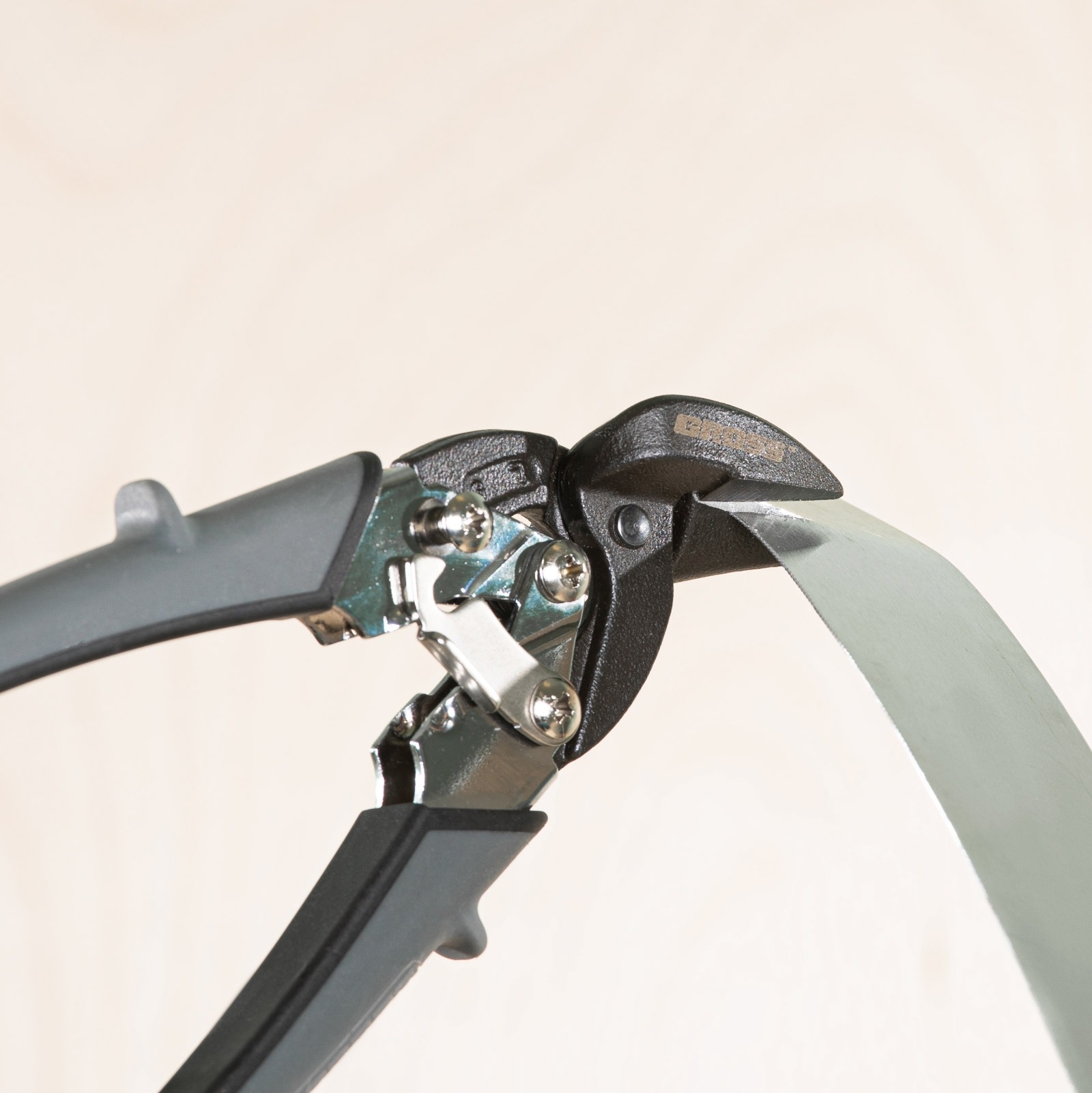 Двойной рычажный механизм экономит усилия и повышает производительность ножниц. Общая длина инструмента составляет 185 мм, поэтому он удобен для работы в труднодоступных местах. Ножницы рекомендованы для профессионального применения, пригодятся также и в быту.