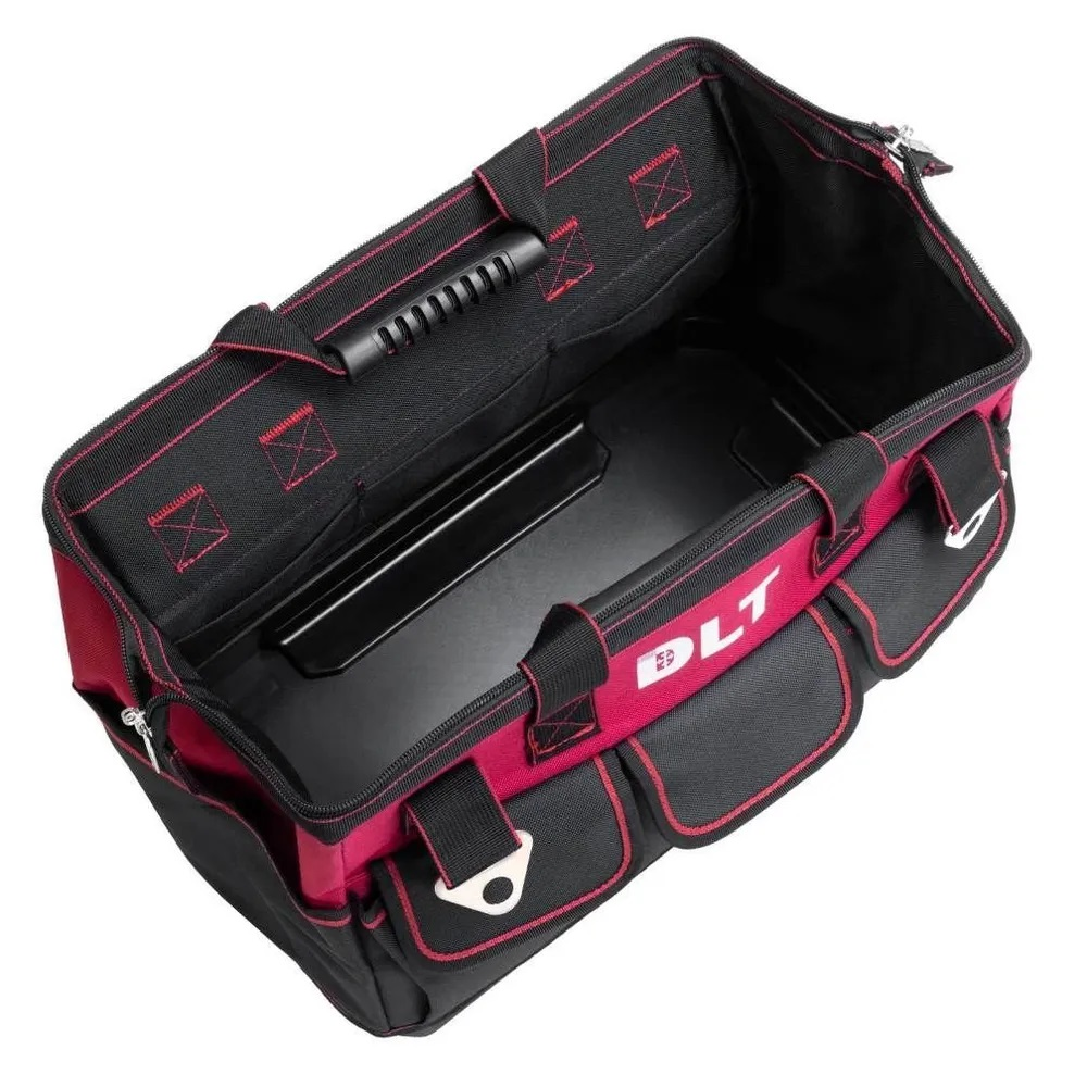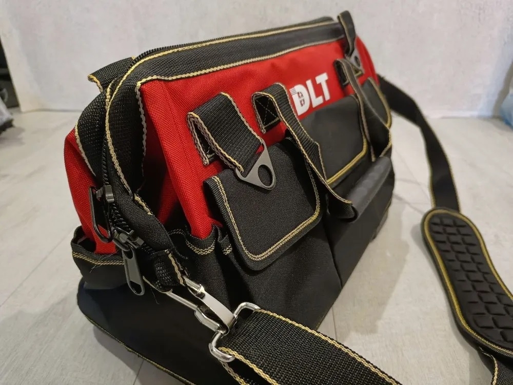 Сумка для инструментов DLТУдобная вместительная и прочная сумка для хранения и переноски инструментов, расходных материалов. Сумка выполнена из прочного материала, оснащена прошитыми ручками со вставками для удобства переноски, надежной молнией, жестким дном благодаря чему не боится влаги и пыли. Сумка для инструмента DLT имеет 1 основной, 8 внутренних и 8 наружных карманов для хранения.