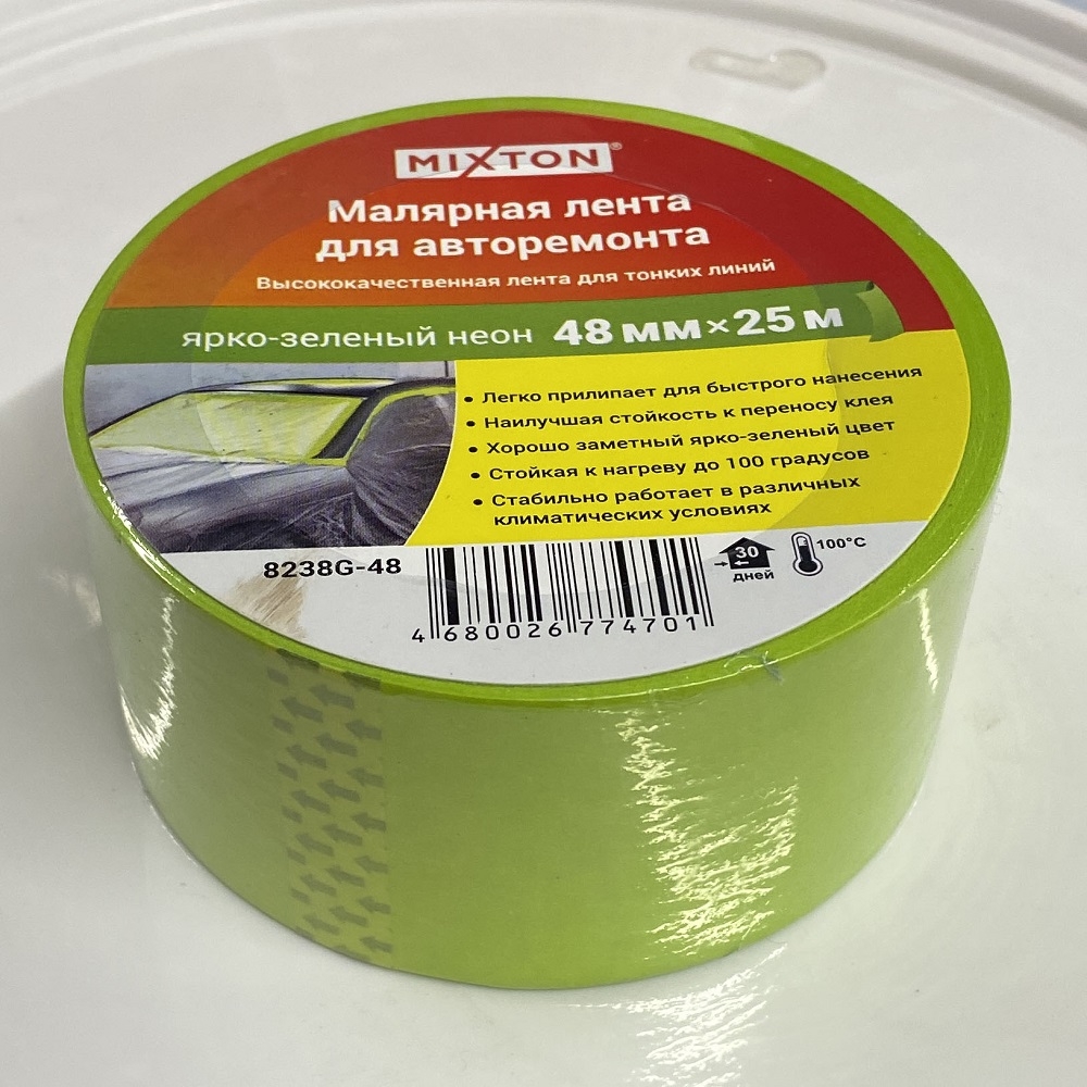 Малярная лента MIXTON / Микстон для тонких линий на крепированной бумаге, цвет ярко-зеленый неон, ширина 48мм, длина 25м / скотч