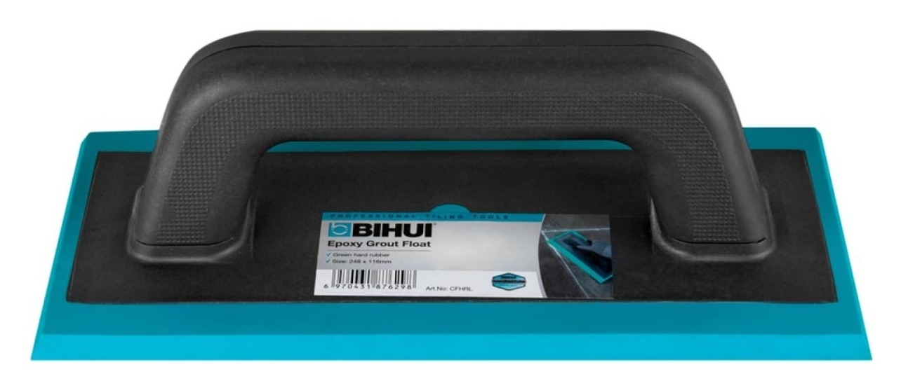 Тёрка для эпоксидной затирки BIHUI имеет размер 248x116мм и имеет пластину средней жесткости из высокоустойчивой к истиранию резины (каучук). Плотность резины у кельм данной модели делает их идеальными для работ с эпоксидными фугами и швами шириной более 3мм, обеспечивая их полной заполнение без рисков деформации. Гибкость резиновой пластины у данной модели гарантирует однородное заполнение шва и утрамбовку затирочного материала.