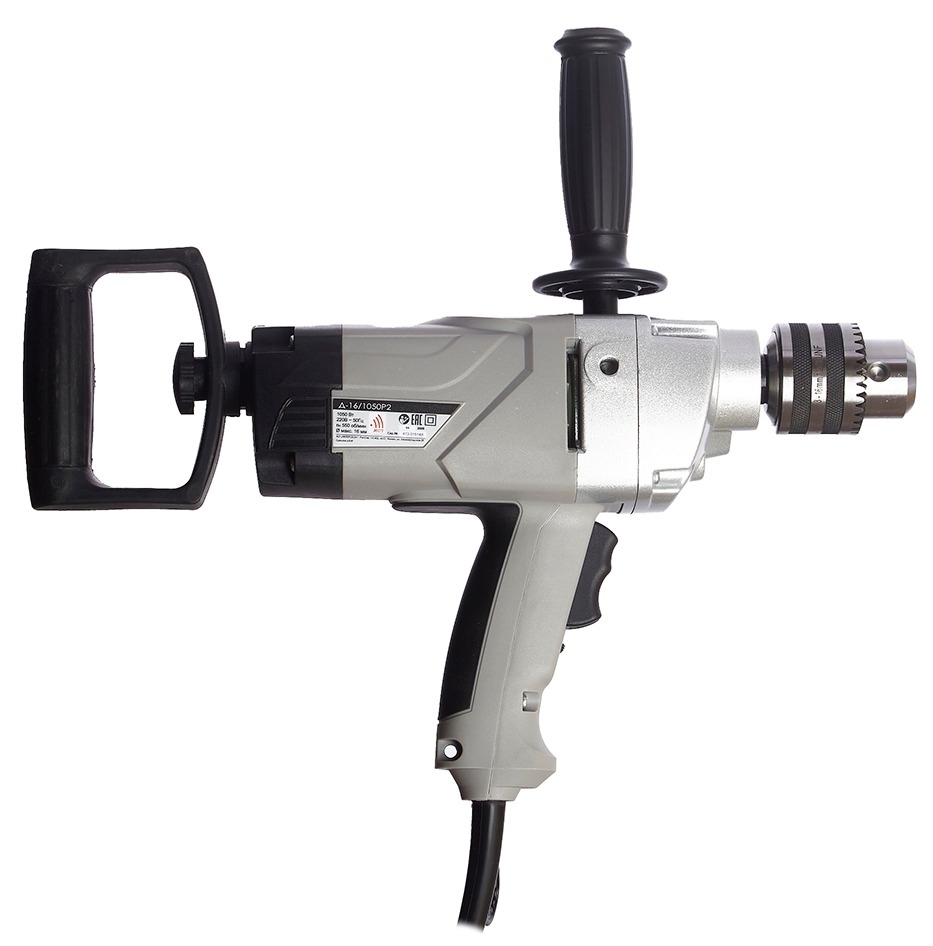 Профессиональная дрель рекомендуется для тяжелых и длительных работ, таких как сверление отверстий большого диаметра и глубины, например, при сборке брусового дома для установки нагелей с помощью перовых сверл с удлинителем или винтовых сверл с ходовым буравчиком Левиса, в качестве миксера при перемешивании различных смесей, начиная от краски и заканчивая бетоном с различным наполнителем, для работы крацовками и шлифкругами при выполнении шлифовки и зачистки. мощный и надежный двигатель, обеспечивающий высокую производительность инструмента в продолжительном режиме работы 16мм ключевой патрон уверенно работает с крупной оснасткой и выдерживает значительные нагрузки длительное время специальный выключатель, легко и удобно позволяет включать как прямое, так и реверсивное вращение движок фиксации выключателя во включенном состоянии две дополнительные рукоятки – прямая и D-образная, которые могут быть установлены в 4 позиции для максимального удобства.
