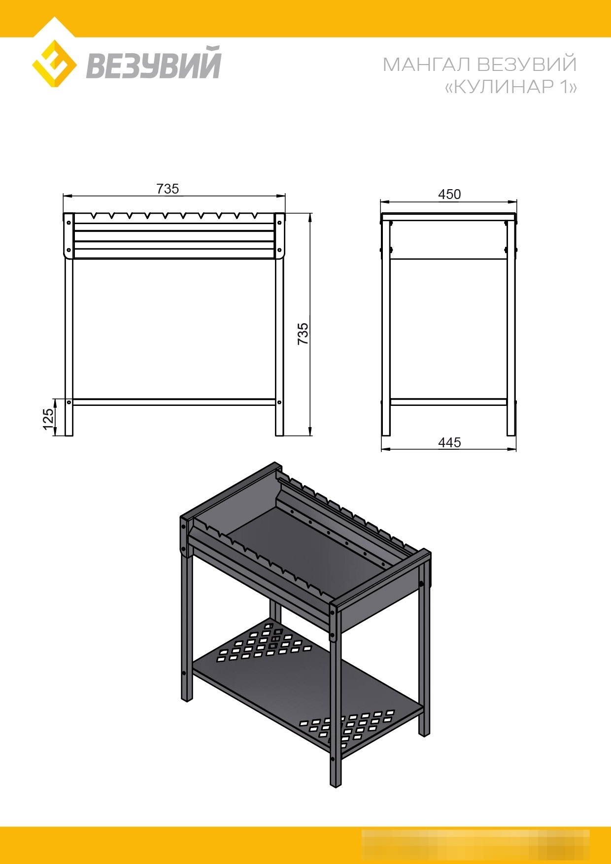 Мангал Везувий Кулинар 1 усиленный, стальной, 735×735×450мм / отдых и пикник