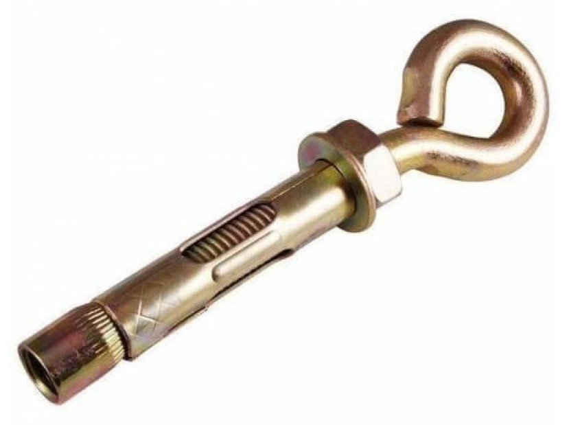 Анкера с кольцом используют для крепления подвесных конструкций с применением гибких элементов, таких как цепи, тросы и канаты. Предназначены для крепления тяжеловесных конструкций, кабельных трасс, растяжек для монтажа воздушных коммуникаций (электричество, коммуникационные кабели, и т. д.) Анкер выдерживает большие нагрузки на вырывание. Описание и особенности: Изделие состоит из таких элементов как распорный конус с внутренней резьбой, болт с головкой-кольцом и гайка. Анкерный болт с кольцом пользуется большой популярностью, за счет удобства монтажа и надежности крепления. Применяется для тяжеловесных конструкций. Материал основания: Бетон, Полнотелый кирпич, Камень.