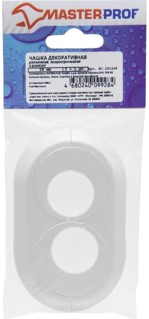 Чашка отражатель MasterProf / МастерПроф декоративная, двойная с эксцентрической вставкой, разъемная, из пластика, белая, диаметр отверстия 28мм, 2шт. / сантехника
