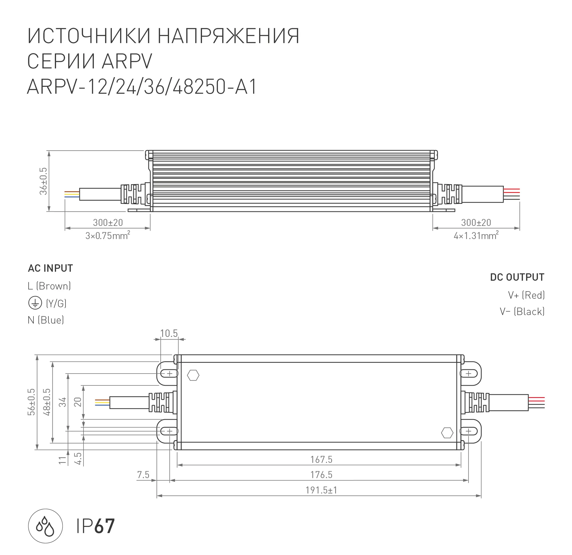 — Класс пылевлагозащиты IP67.