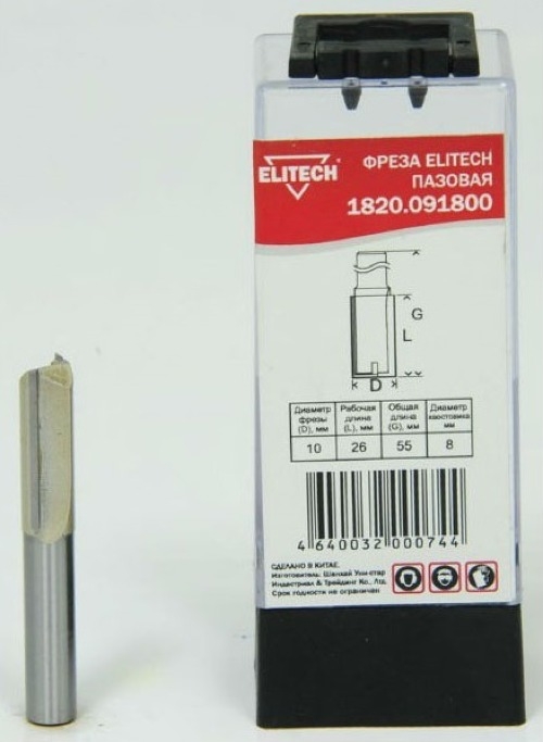 Фреза Elitech / Элитек пазовая прямая удлиненная, 2 лезвия, стальная, диаметр 10мм, хвостовик 8мм, 25.4/55мм / инструменты
