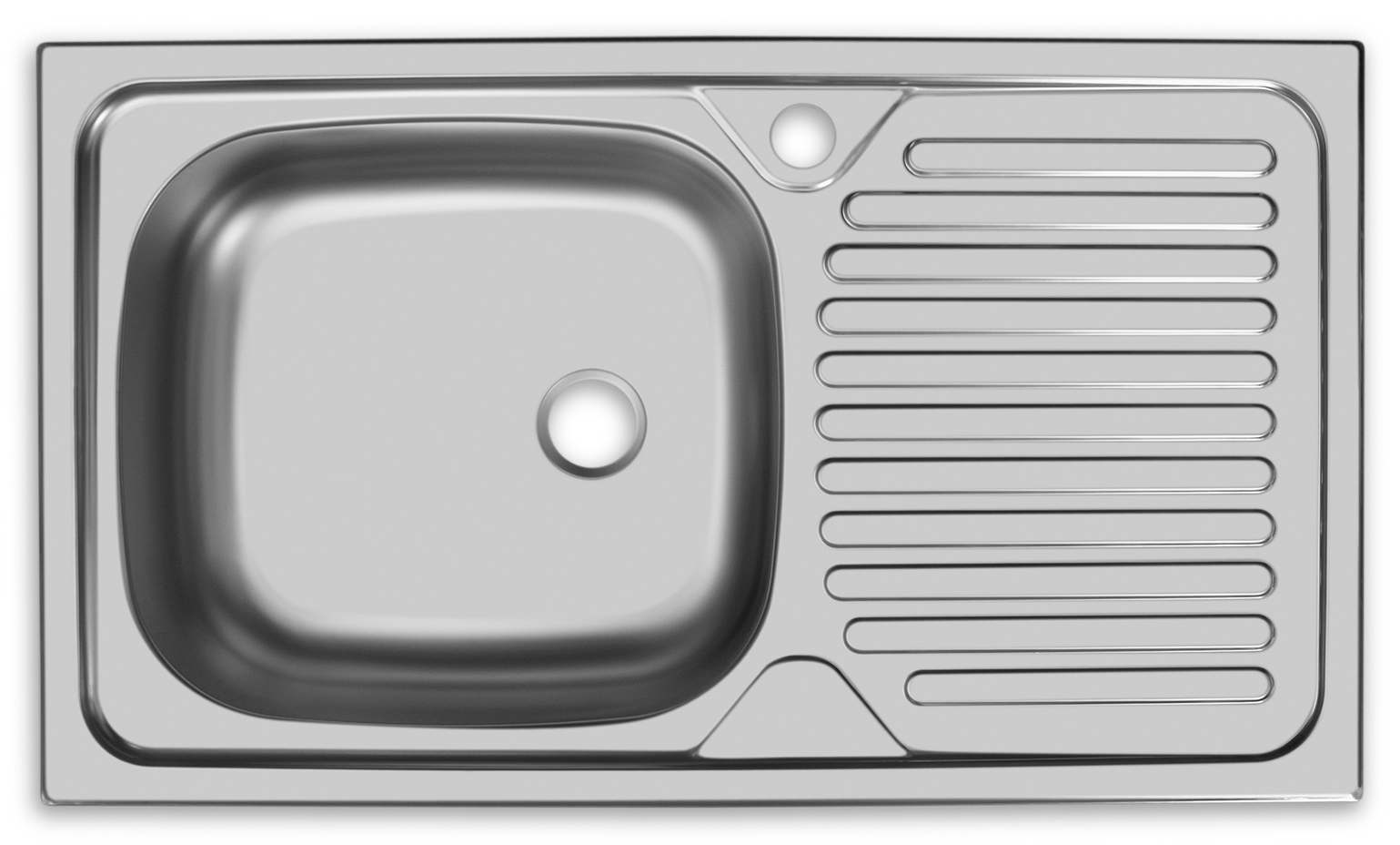 Мойка врезного способа монтажа имеет размеры 760×435 мм. Такая раковина идеально подойдет для небольшой кухни. Вместительность чаши позволяет свободно и с комфортом использовать мойку даже при мытье крупногабаритной посуды. Широкое крыло послужит дополнительной рабочей поверхностью. Его используют для хранения грязной посуды, либо сушки уже вымытой посуды, чему способствует рельефный рисунок, в том числе, крыло можно использовать для разморозки продуктов или хранения фруктов/овощей перед приготовлением.