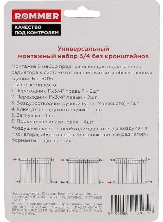 Монтажный комплект для радиатора Rommer простой и удобный в использовании. Все его составляющие выполнены из высококачественных материалов. Позволяют в полной мере выполнить необходимые действия относительно требуемого оборудования.