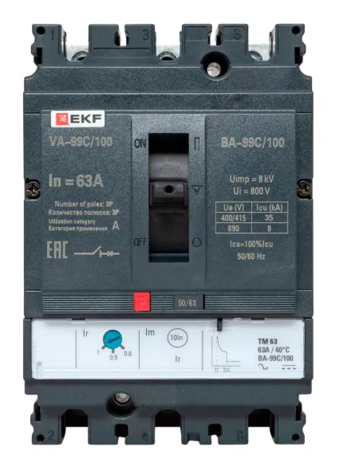 Согласно классификатору Etim автоматический выключатель силовой EKF ВА-99 °C обладает широким набором характеристик: