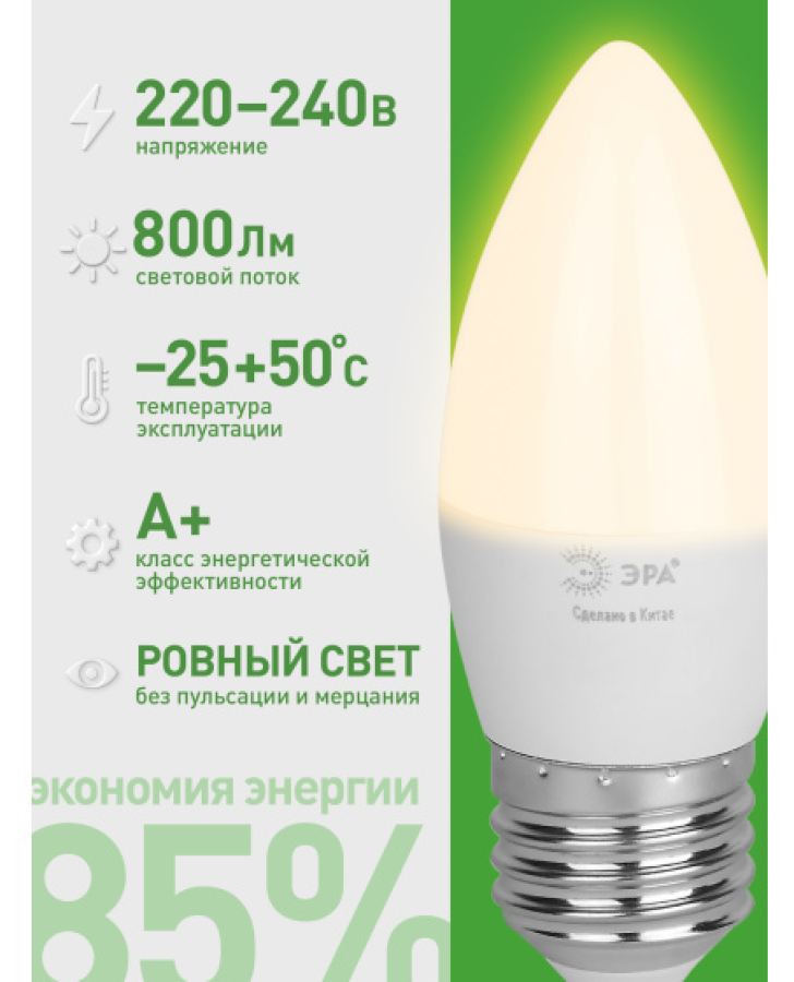 Светодиодные лампочки ЭРА Green Line B35-8W-830-E27 помогут сохранить ваш семейный бюджет и наполнят ваш дом светом!
