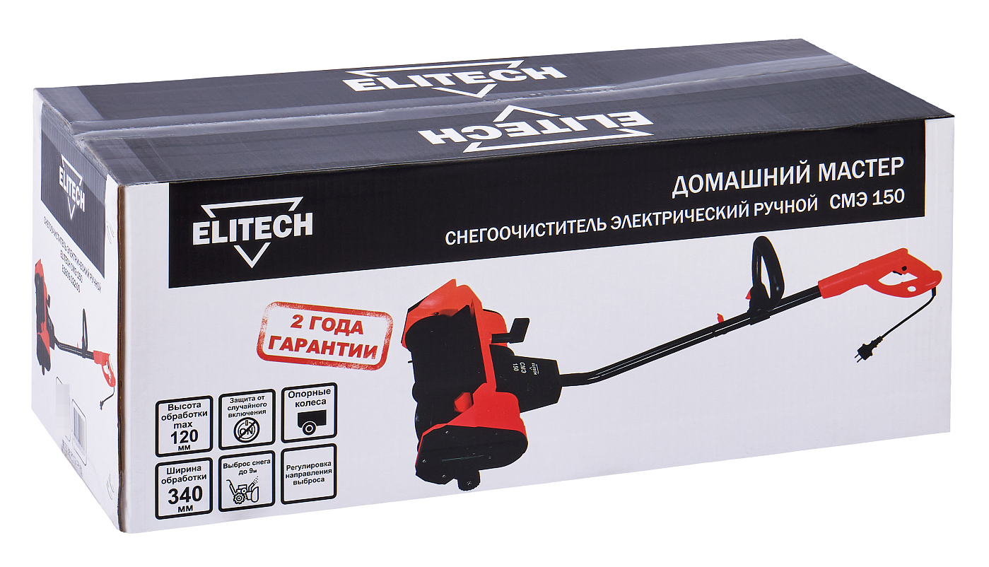 Снегоуборщик ELITECH ДМ / Элитек ДМ СМЭ 150 электрический, в корпусе из пластика, 645x340x255мм, 1500Вт, ковш 34×12см / снегоуборочная техника