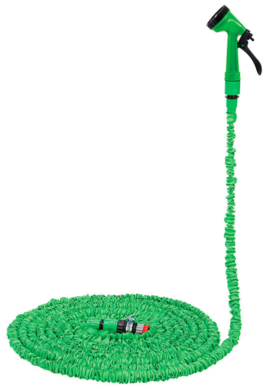 Специальный растяжной шланг увеличивается в длину в 3 раза. Изготовлен из сверхпрочного латекса, благодаря чему дольше сохраняет форму, выдерживает практически любое натяжение. Давление на входе — минимум 2 бара, максимум 6.