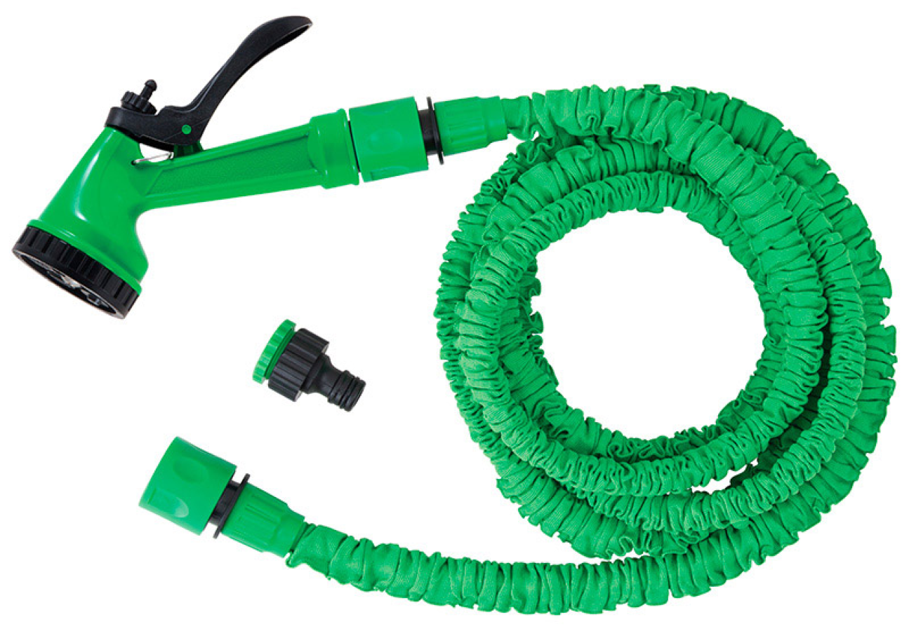 — Шланг растяжной (номинальная длина — 5 м, максимальная растяжимость — 15 м) с двумя соединителями диаметром 1/2";