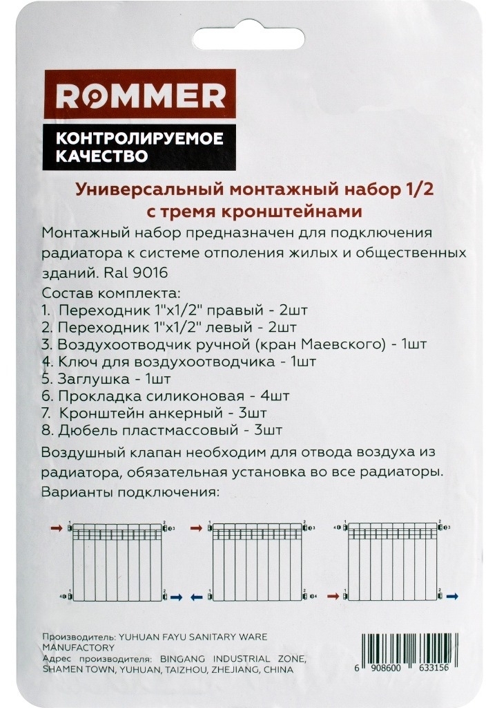 Монтажный комплект для радиатора Rommer простой и удобный в использовании. Все его составляющие выполнены из высококачественных материалов. Позволяют в полной мере выполнить необходимые действия относительно требуемого оборудования.