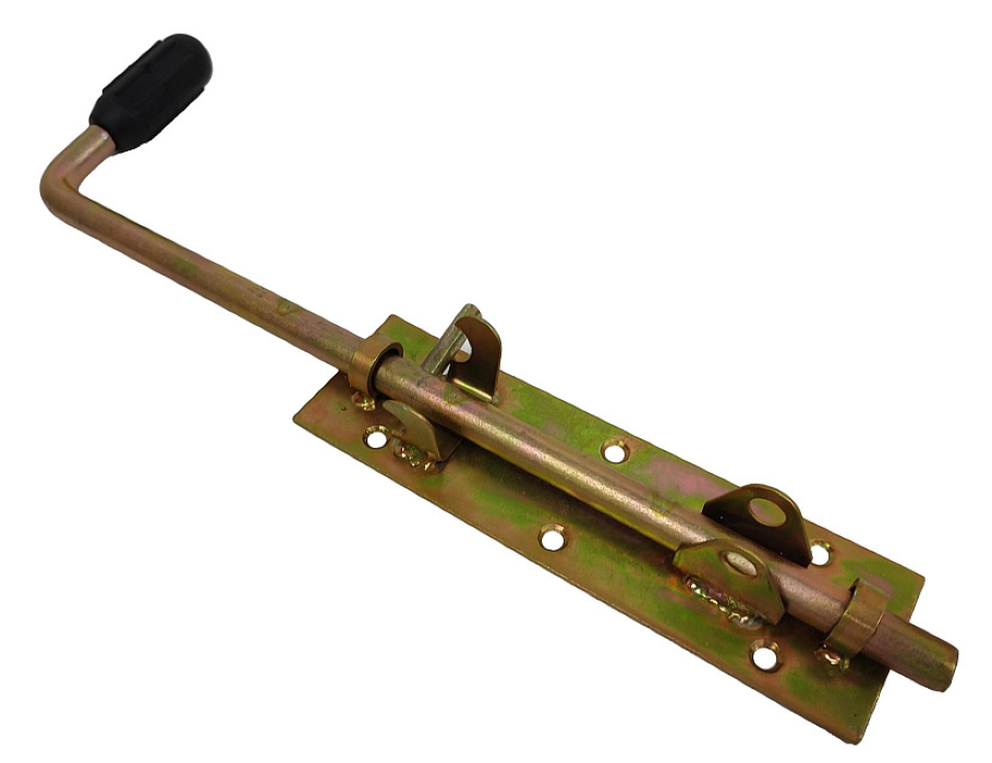 Задвижка СКОБЯНОЙ под замок накладная, из металла, желтый цинк, длина 400мм - 1шт.