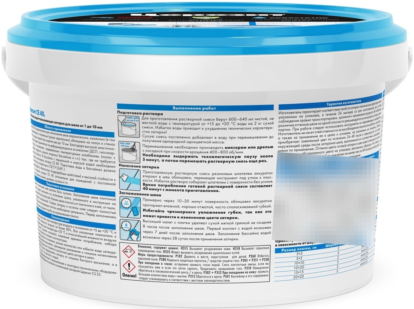 Затирка Ceresit СЕ 40 Aquastatic предназначена для заполнения швов облицовок из керамических, каменных (в том числе мраморных) и стеклянных (кроме зеркальных) плиток на полах и стенах внутри и снаружи зданий, при ширине шва до 10 мм.