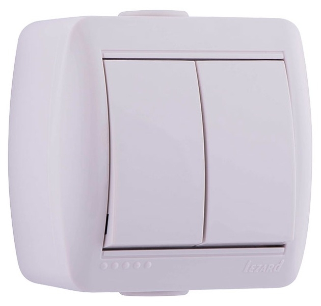Выключатель LEZARD NATA 710-0200-101 двойной, открытой проводки, белый с белой вставкой. Особенности заключаются в европейском дизайне; в повышенной безопасности негорючего поликарбонатного ПК-пластика; в более прочном и устойчивом к механическому воздействию покрытии; в простом монтаже и демонтаже.