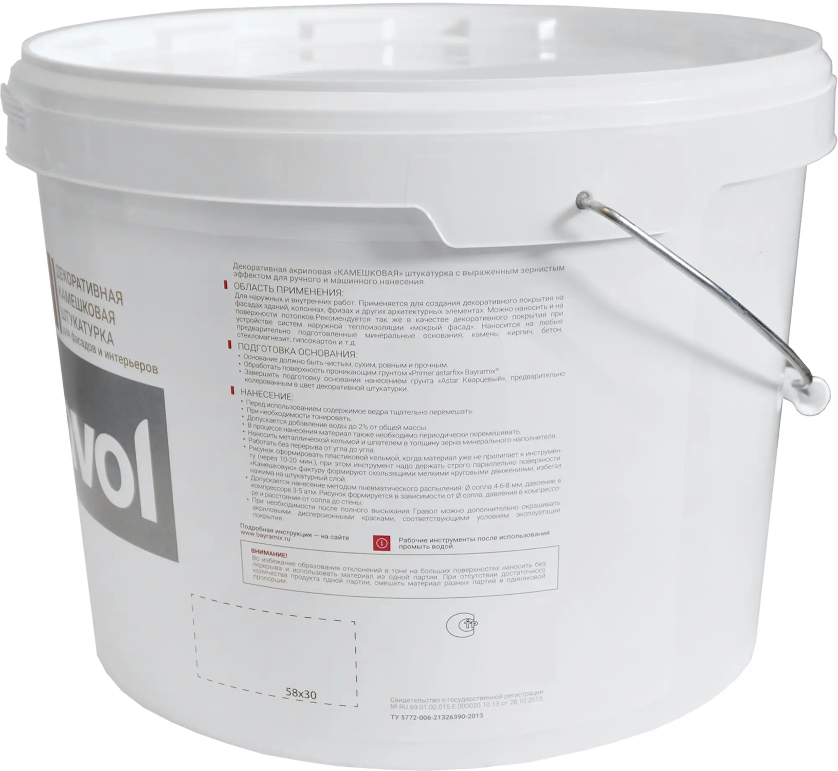 Декоративная штукатурка Bayramix / Байрамикс Gravol фракция 1.5мм, камешковая, фактурная, для внутренних и наружных работ, акриловая, белая, 15кг / строительные смеси