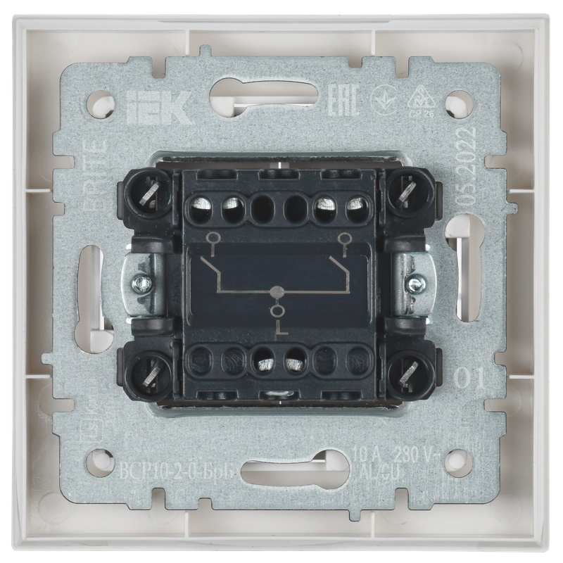 Выключатель IEK / ИЕК BRITE ВСР10-2-0-БрБ двухклавишный, механический, для скрытого монтажа, в пластиковом корпусе, белый, 220В, 10А, IP20 / электрика