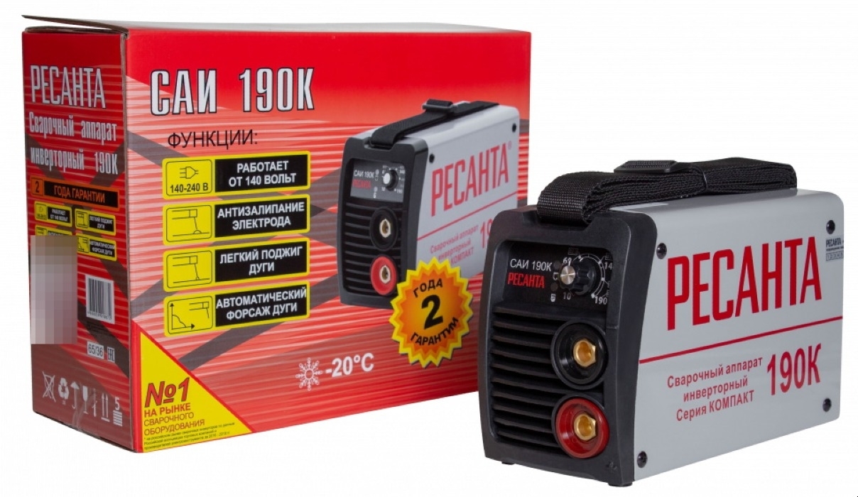 Сварочный аппарат РЕСАНТА САИ-190К предназначен для ручной сварки 5-миллиметровым электродом в бытовых и производственных условиях.
