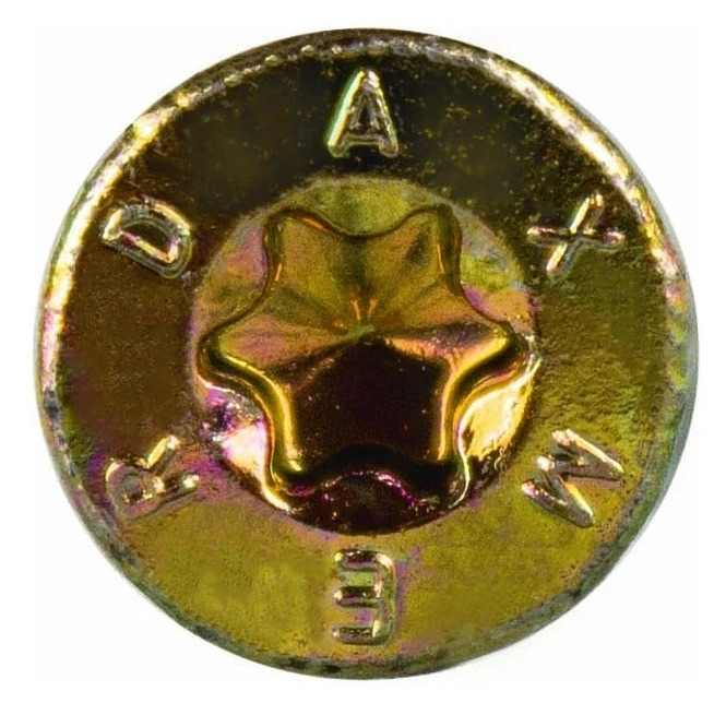 Саморез конструкционный Torx обеспечивает максимальную безопасность и надежность соединений при монтаже деревянных конструкций, лестниц, стропил, фасадных панелей и т. п. Широко используются при монтаже ламинированного ДСП, пластика и специальных террасных досок. Метиз представляет собой остроконечный шуруп c потайной шляпкой. Потайная шляпка оснащена маркировкой по кругу — «DAXMER» и шлицем TORX. Оцинкованные саморезы обеспечивают долговечность крепления и защиту крепежного материала от ржавчины, имеют лучшую способность противостоять различным механическим повреждениям. Этот крепеж подходит для работы с абсолютно любыми породами дерева и не требует предварительного сверления.