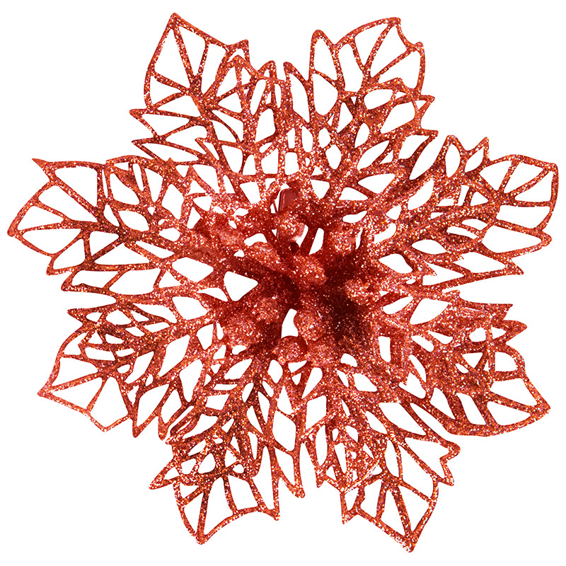 Украшение Волшебная страна Пуансеттия подвесное, декоративное, новогоднее, из пластика, 140мм, 4шт. / товары для праздников