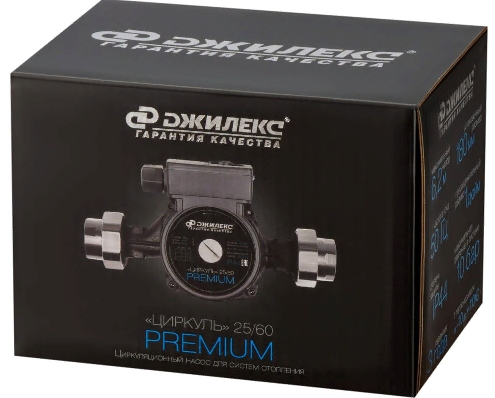 Циркуляционный насос Джилекс ЦИРКУЛЬ 25/60 PREMIUM для отопления, черный, 70л/мин, макс давление 10бар, напор 6.2м, 65Вт / дом и сад