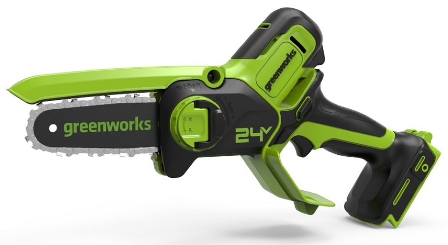 Пила цепная аккумуляторная Greenworks / Гринворкс G24MCS10 для пиления древесины, полотно 100мм, 1/4дюйма, 46 звеньев, Li-Ion, 2А/ч / электроинструмент