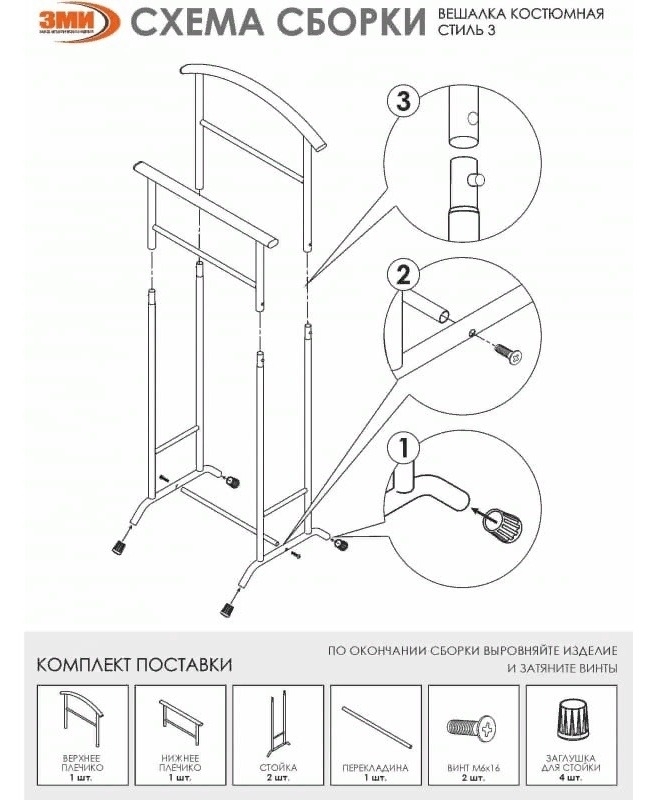 Вешалка плечики ЗМИ Стиль 3 костюмная напольная, металлическая, белая, 1080×470×350мм, в упаковке 1шт. / товары для дома