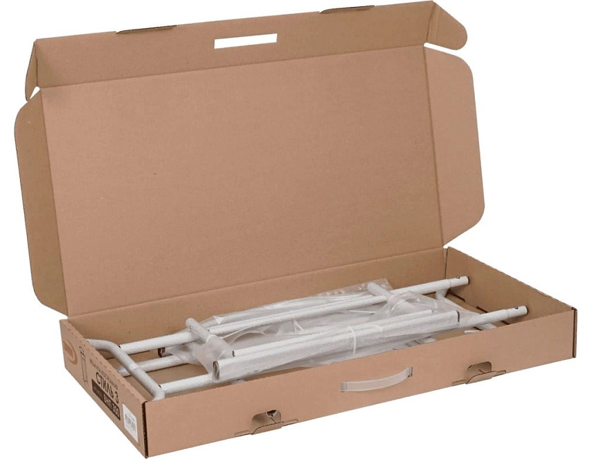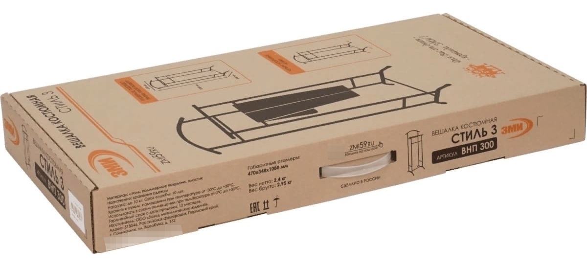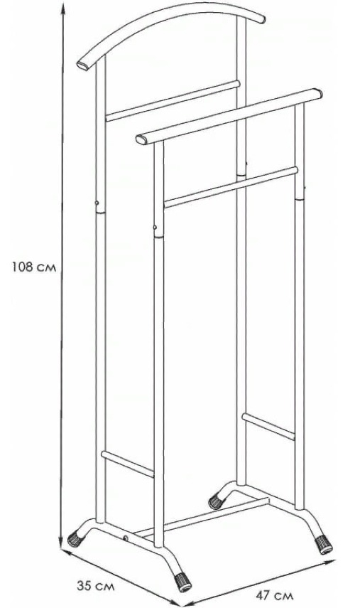 Вешалка для одежды реализуется в индивидуальной упаковке. Количество — 1 шт. Материал — металл. Размер — 1080×470×350 мм.