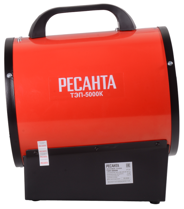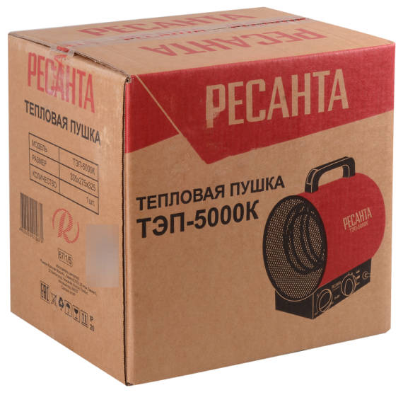 Тепловая электрическая пушка Ресанта ТЭП-5000К реализуется в индивидуальной упаковке. Выполнена в стальном корпусе. Цвет — красный. Размер —.