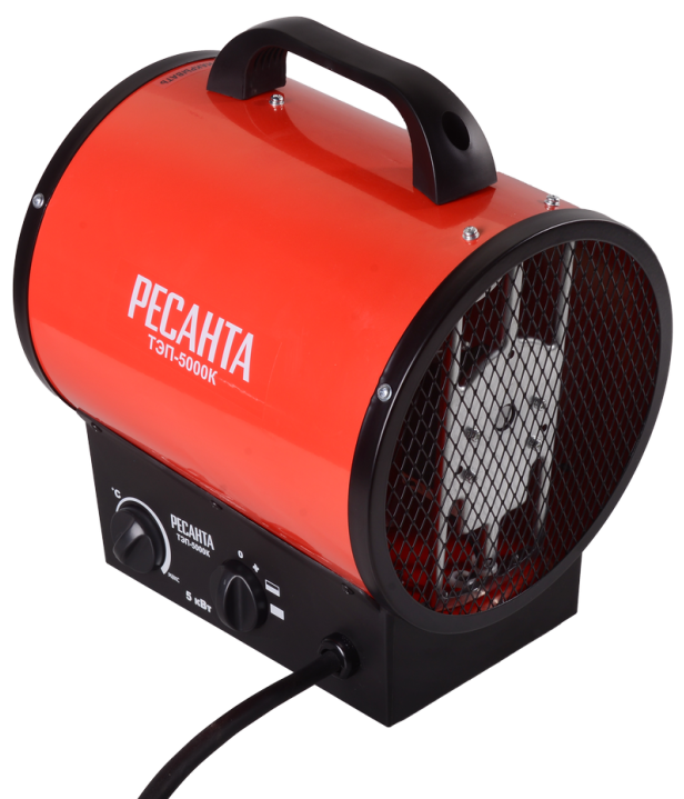 Тепловая пушка Ресанта ТЭП-5000К электрическая, в стальном корпусе, 270х320х385мм, 5кВт, 50м², 400м³/ч, IP 20 / отопление