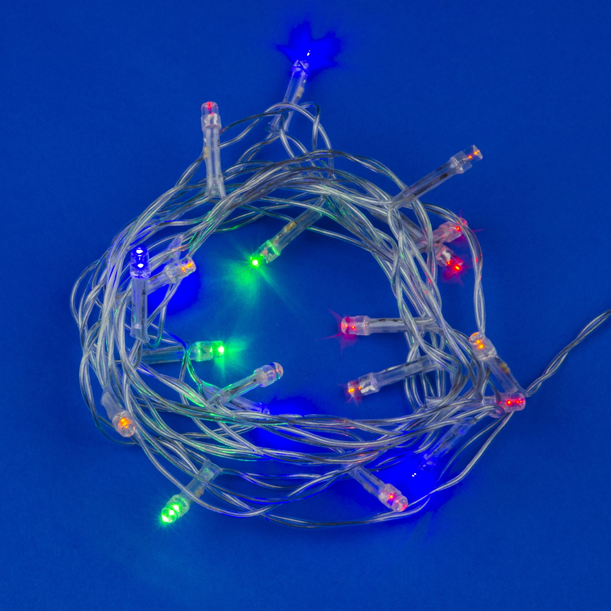 Гирлянда из 20 светодиодных ламп с разноцветным светом для использования внутри помещений. 8 режимов свечения, шнур прозрачный. Материал корпуса: пластик. Длина: 2,8 м. Питание от сети: 180-220В/50-60Гц. Мощность: 2 Вт. Это универсальный элемент декорации для оформления елок, стен, книжных полок, окон, витрин магазинов, залов торговых центров. Новогодняя гирлянда поможет создать атмосферу праздника и волшебства. Класс защиты IP20.